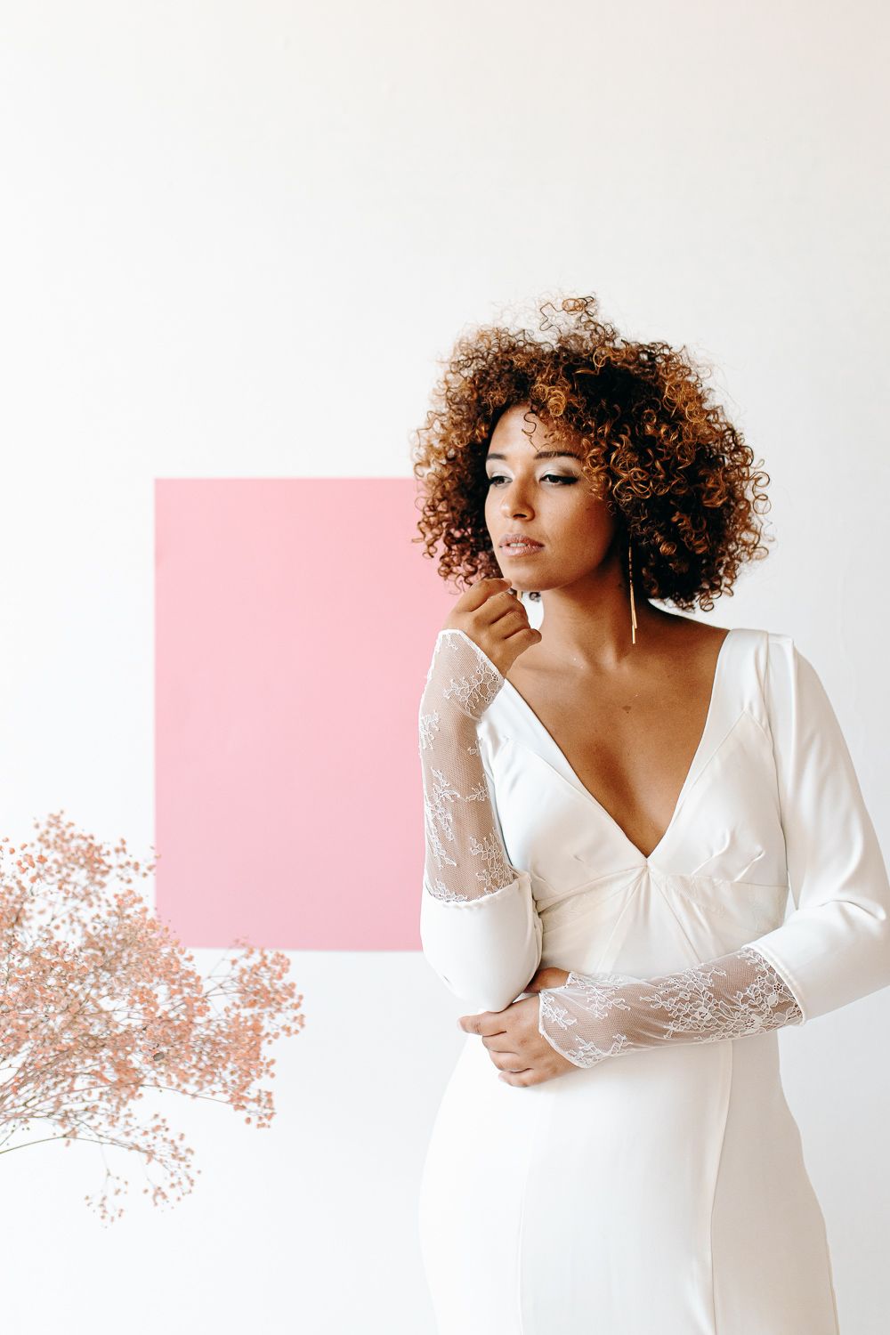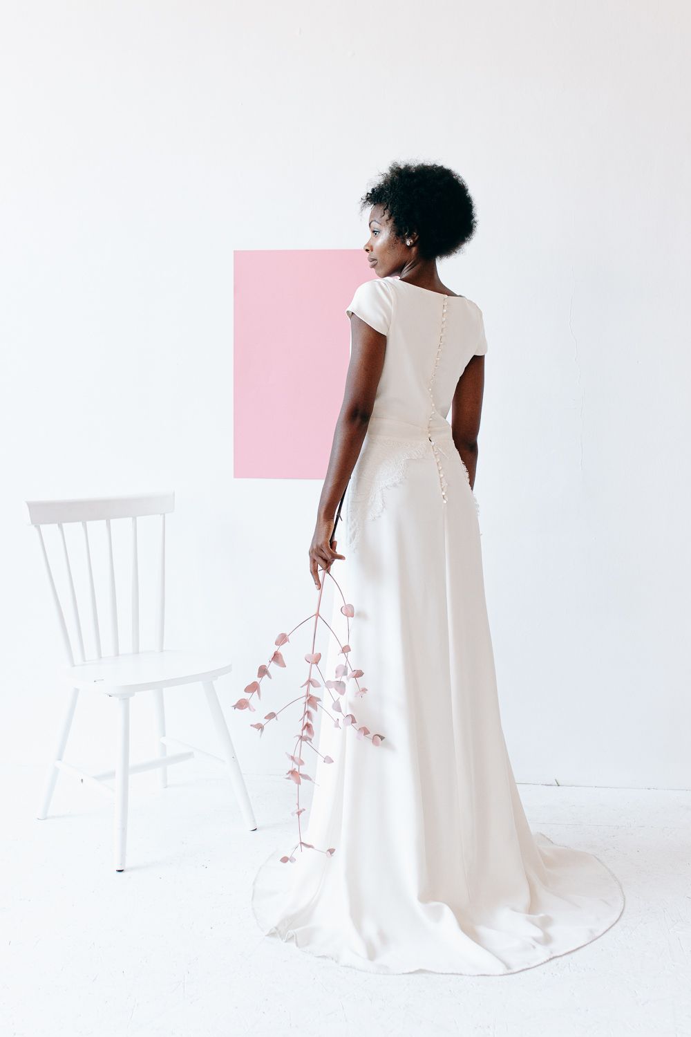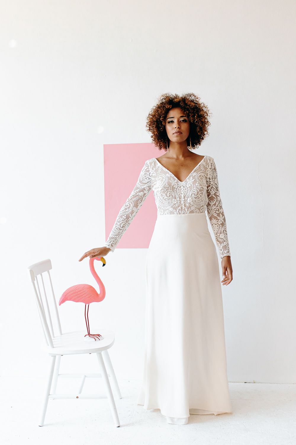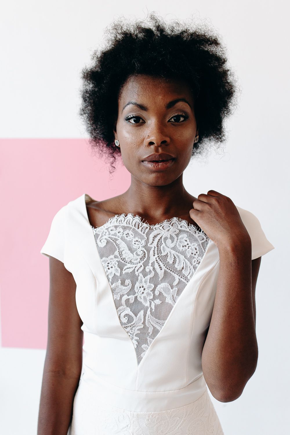 J’ai créé de nouvelles robes de mariée avec de nouvelle matières telles que de la dentelle trois D pour la mariée folk, des tulles brodés pour la romantique, de la guipure pour un air bohème chic et du mikado pour une mariée plus sophistiquée.