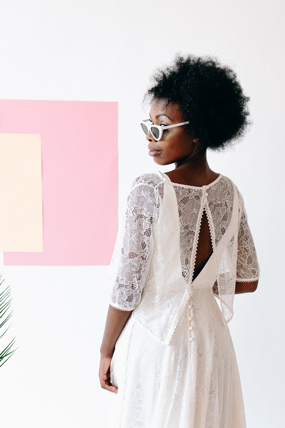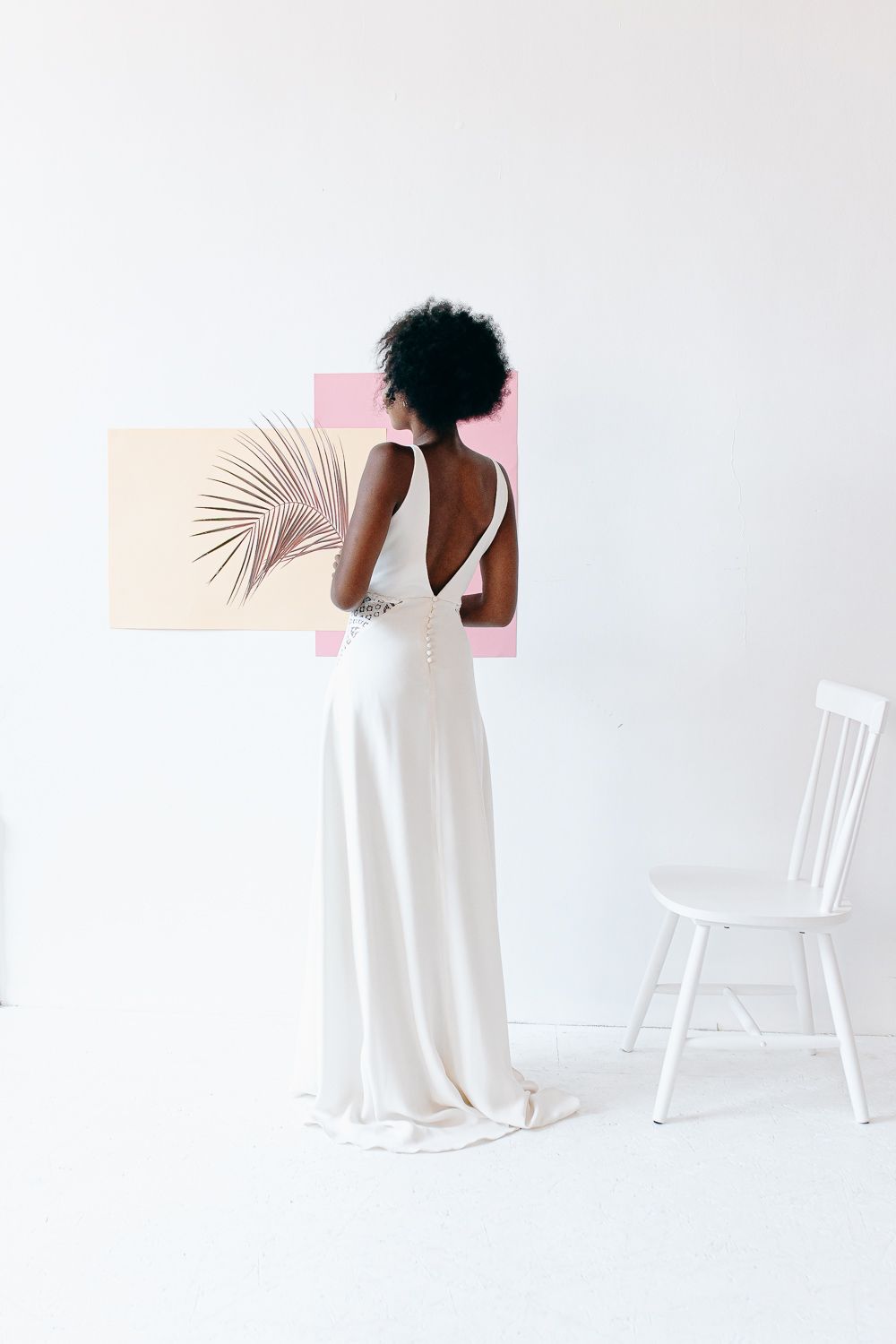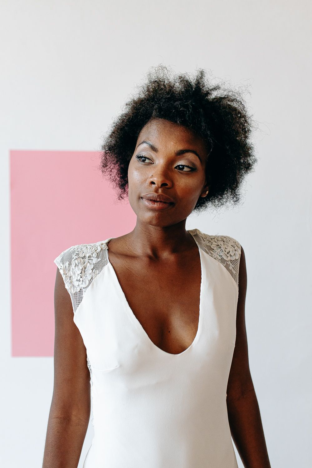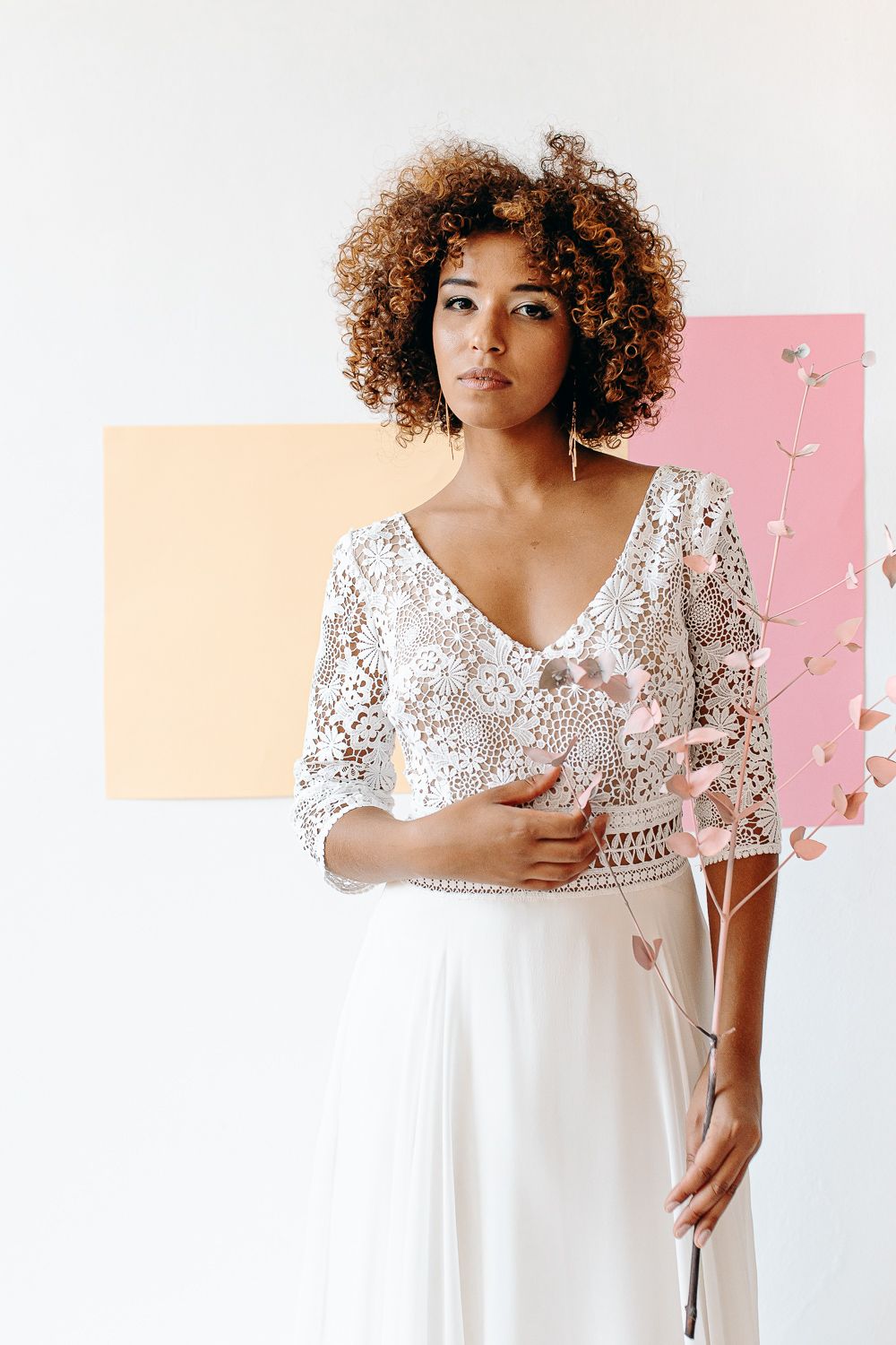 J’ai créé de nouvelles robes de mariée avec de nouvelle matières telles que de la dentelle trois D pour la mariée folk, des tulles brodés pour la romantique, de la guipure pour un air bohème chic et du mikado pour une mariée plus sophistiquée.