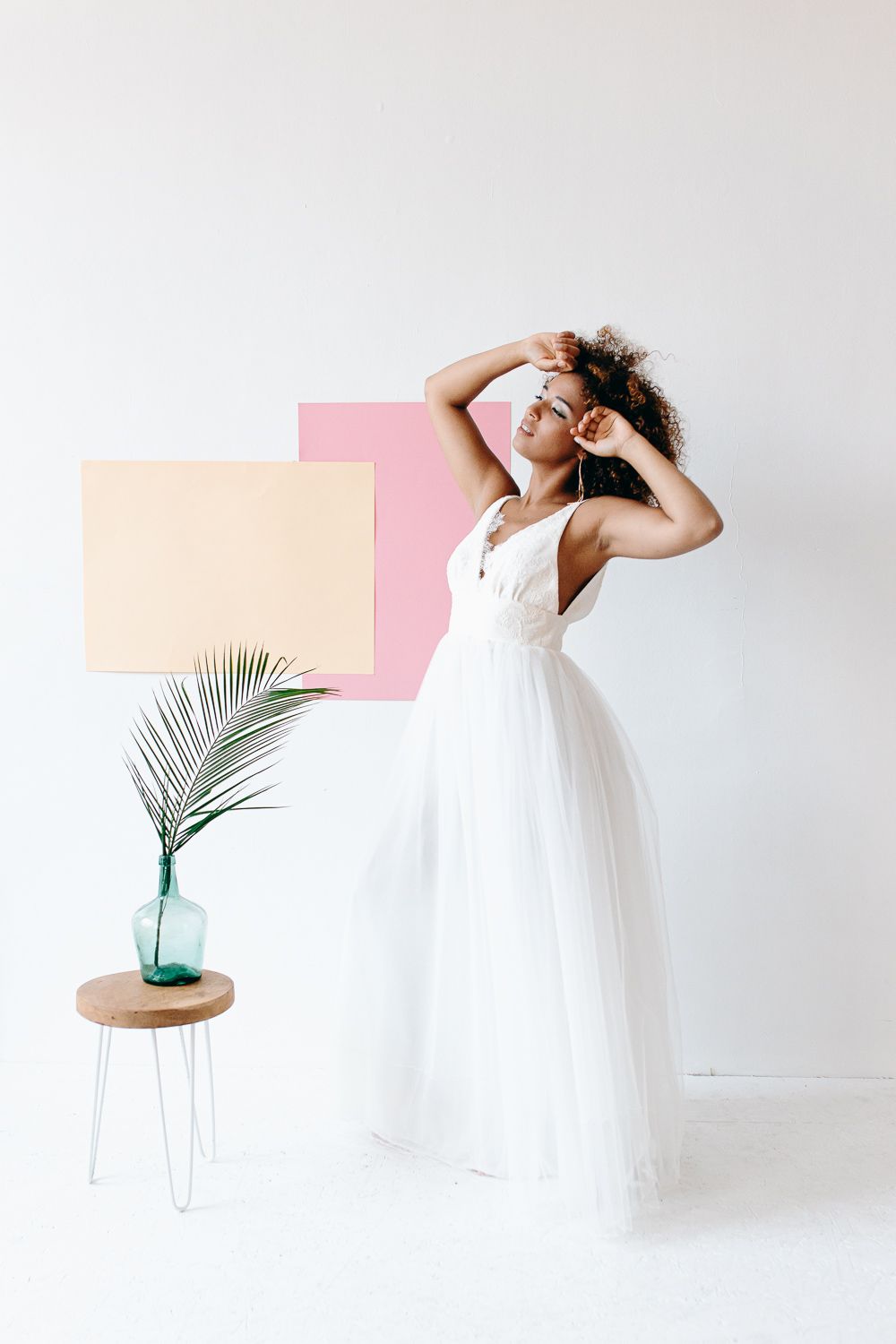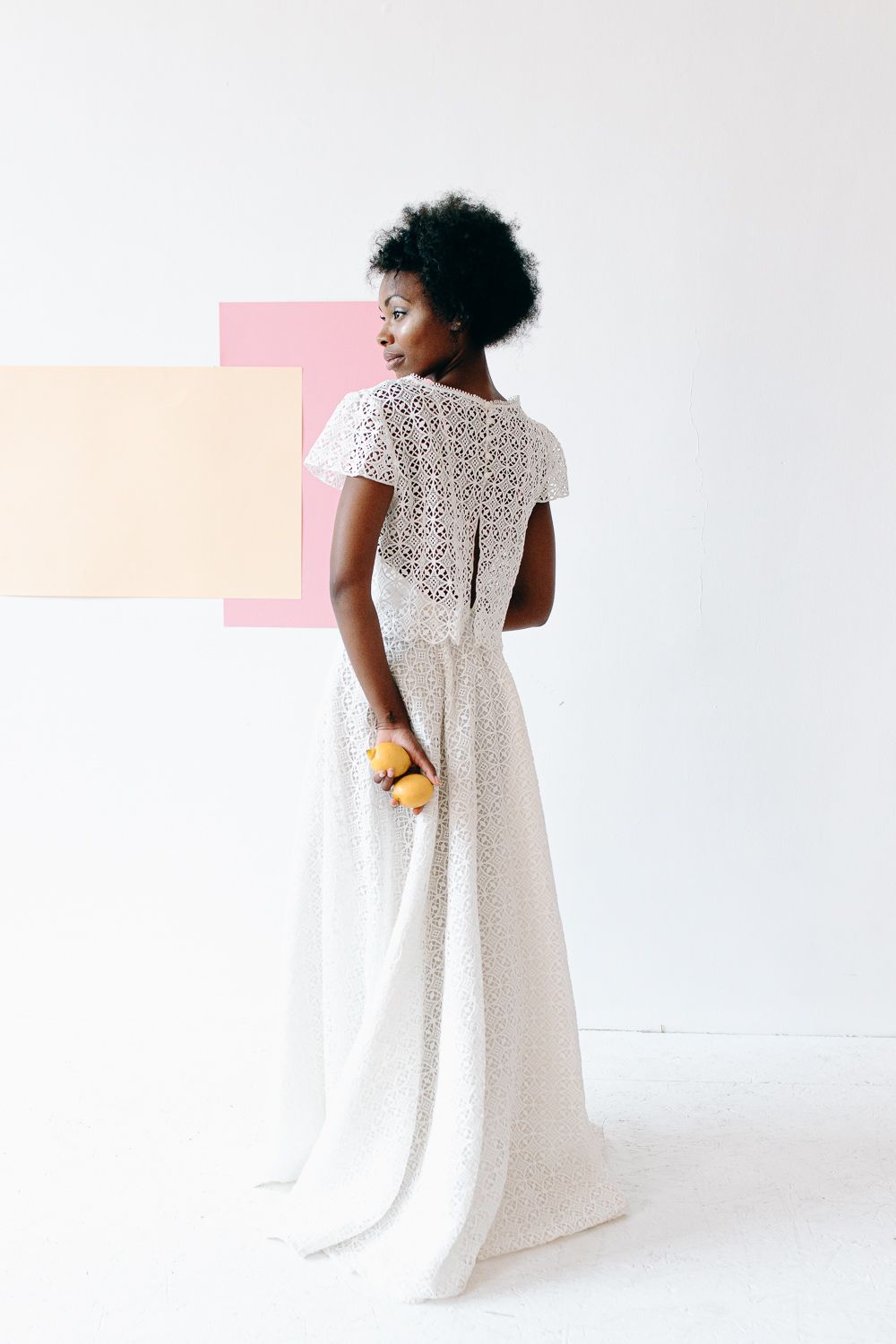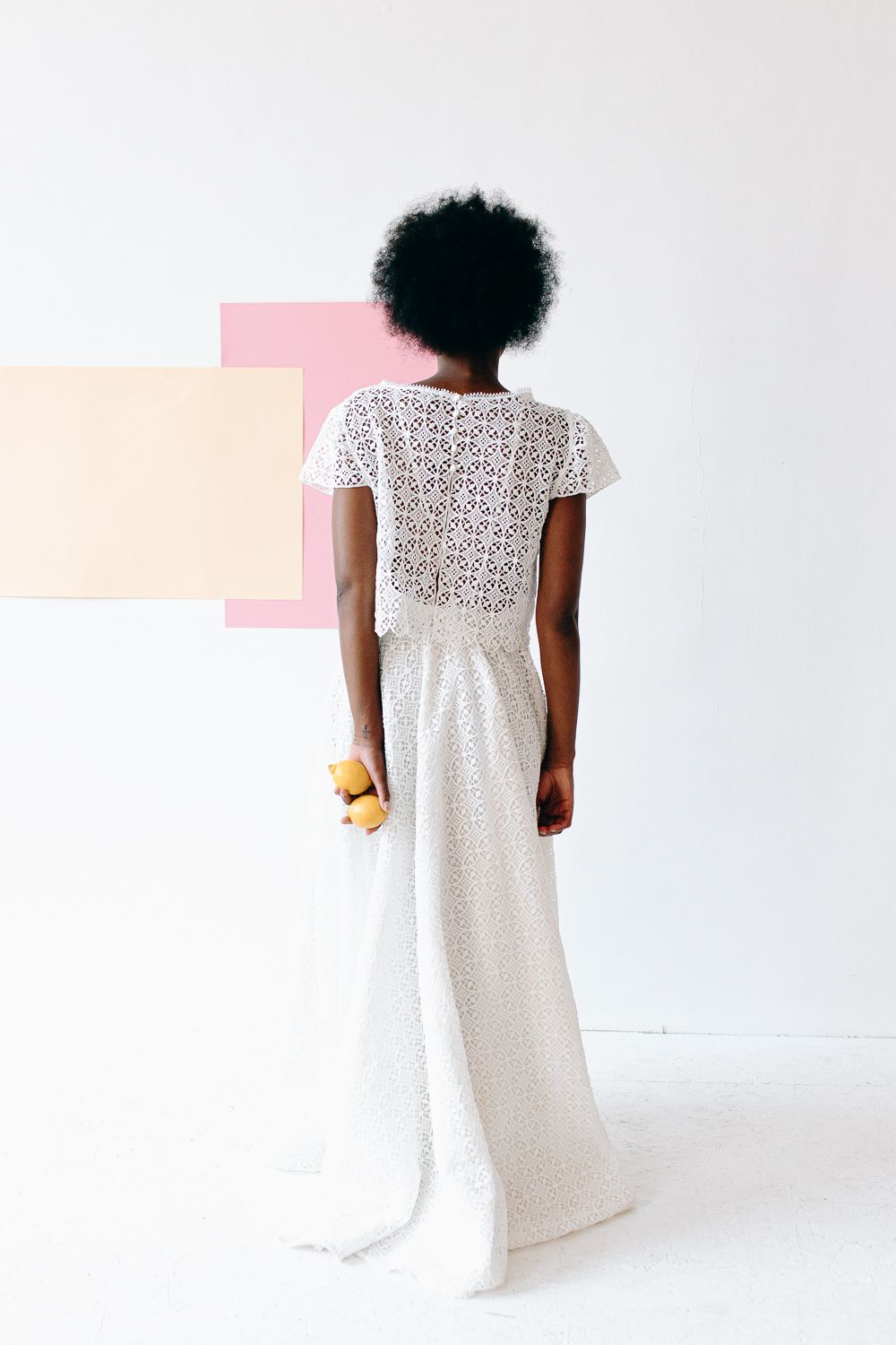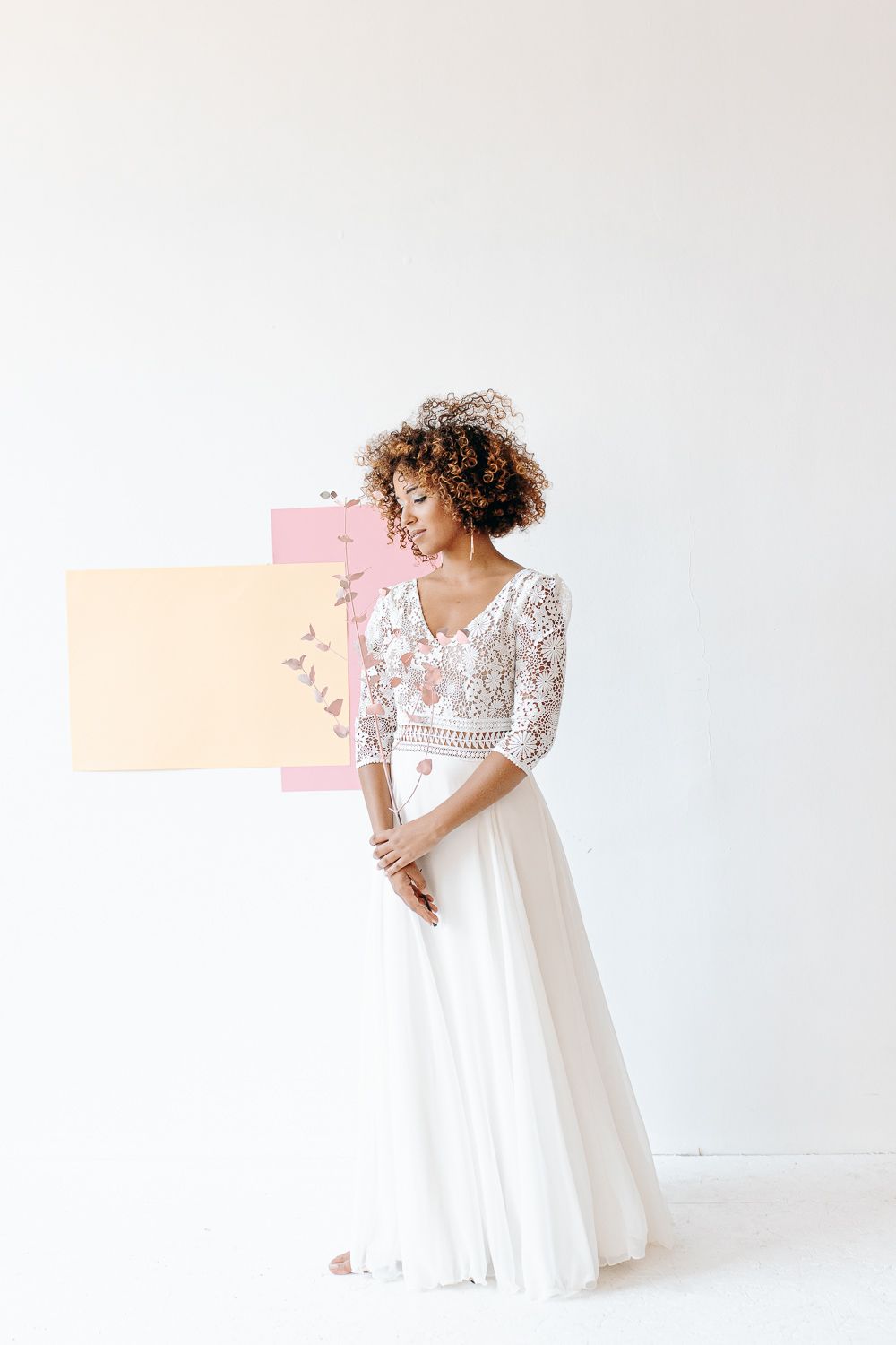 J’ai créé de nouvelles robes de mariée avec de nouvelle matières telles que de la dentelle trois D pour la mariée folk, des tulles brodés pour la romantique, de la guipure pour un air bohème chic et du mikado pour une mariée plus sophistiquée.