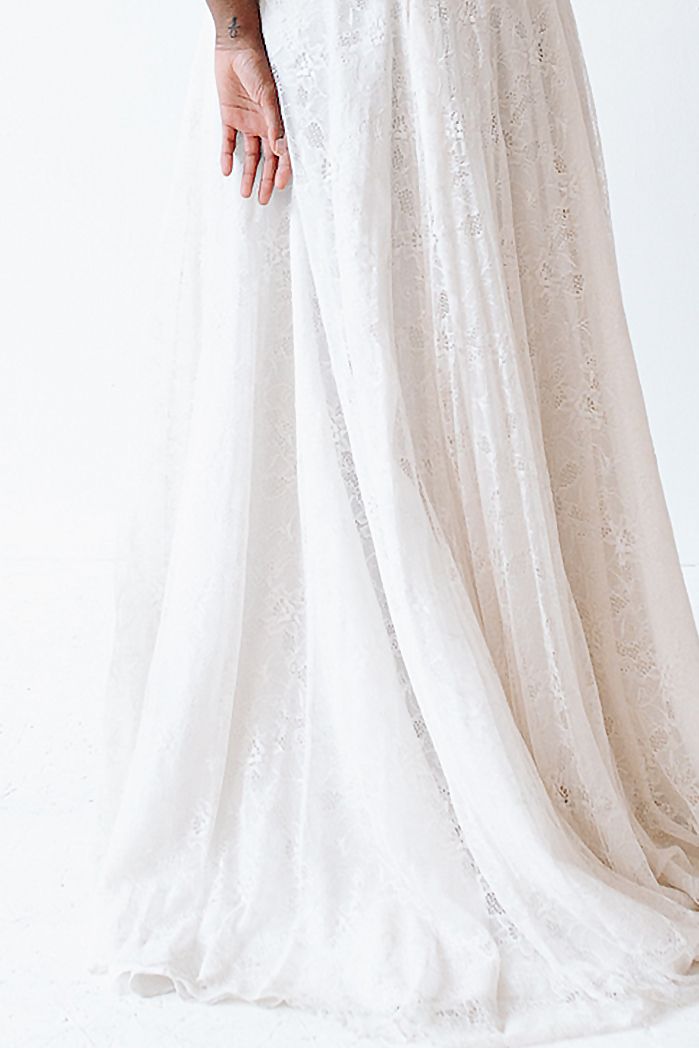 Pour chacune des créations, une variation est disponible pour le bas de la jupe, le choix d’un voile en mousseline ou bien d’un voile en tulle. En effet, en fonction du modèle choisi, il est possible pour la cliente de l'adapter à son budget ou à ses envies.