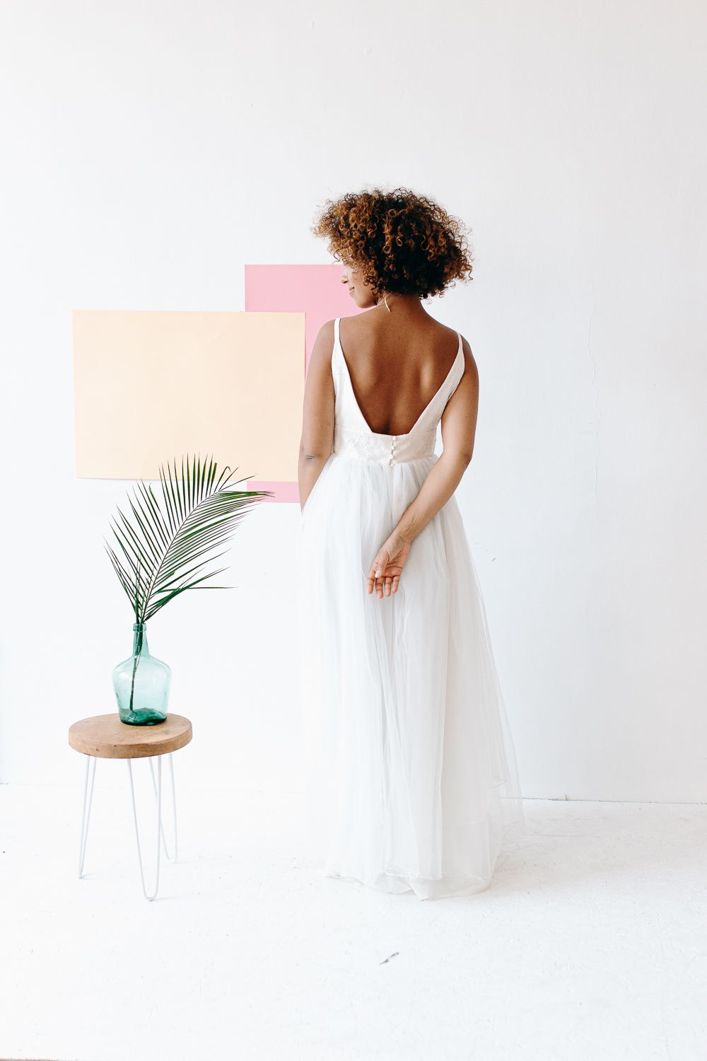 Pour chacune des créations, une variation est disponible pour le bas de la jupe, le choix d’un voile en mousseline ou bien d’un voile en tulle. En effet, en fonction du modèle choisi, il est possible pour la cliente de l'adapter à son budget ou à ses envies.