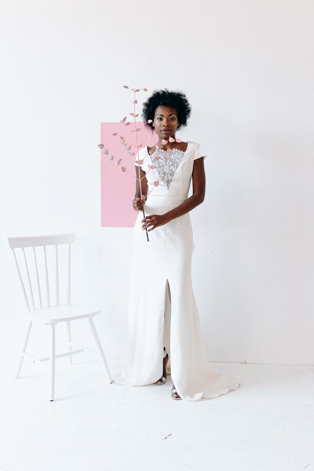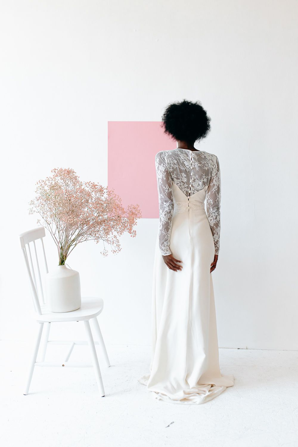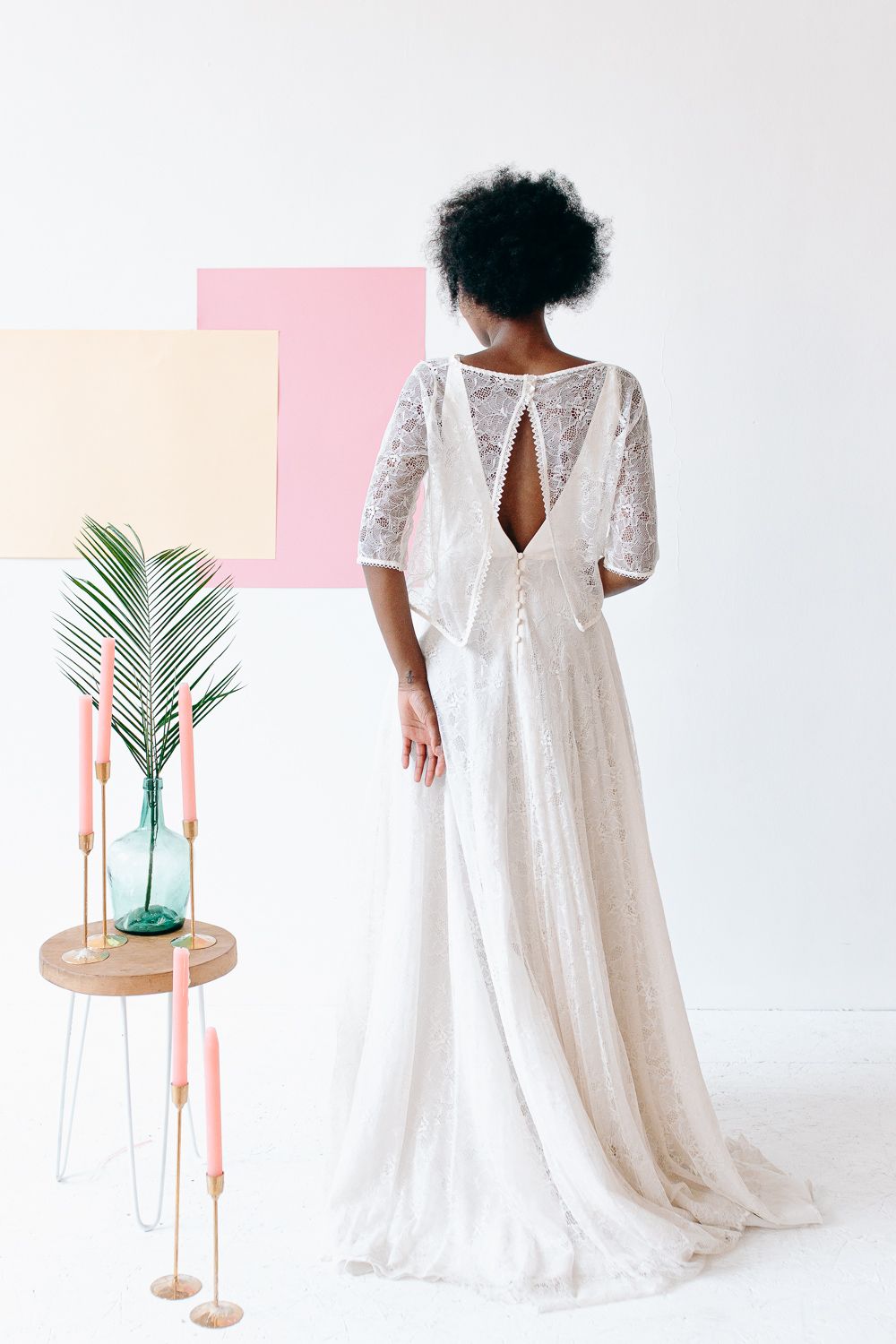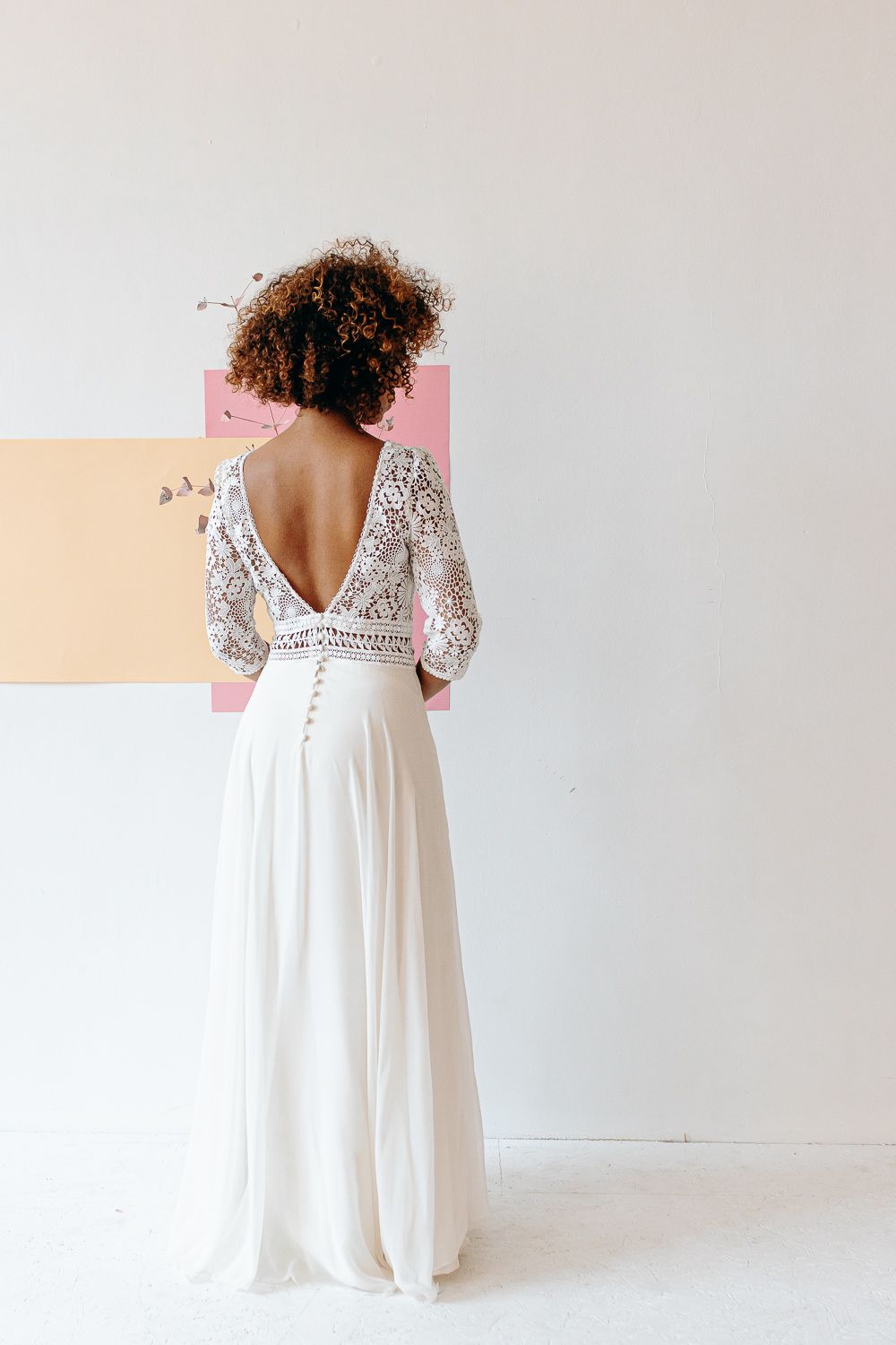 J’ai créé de nouvelles robes de mariée avec de nouvelle matières telles que de la dentelle trois D pour la mariée folk, des tulles brodés pour la romantique, de la guipure pour un air bohème chic et du mikado pour une mariée plus sophistiquée.