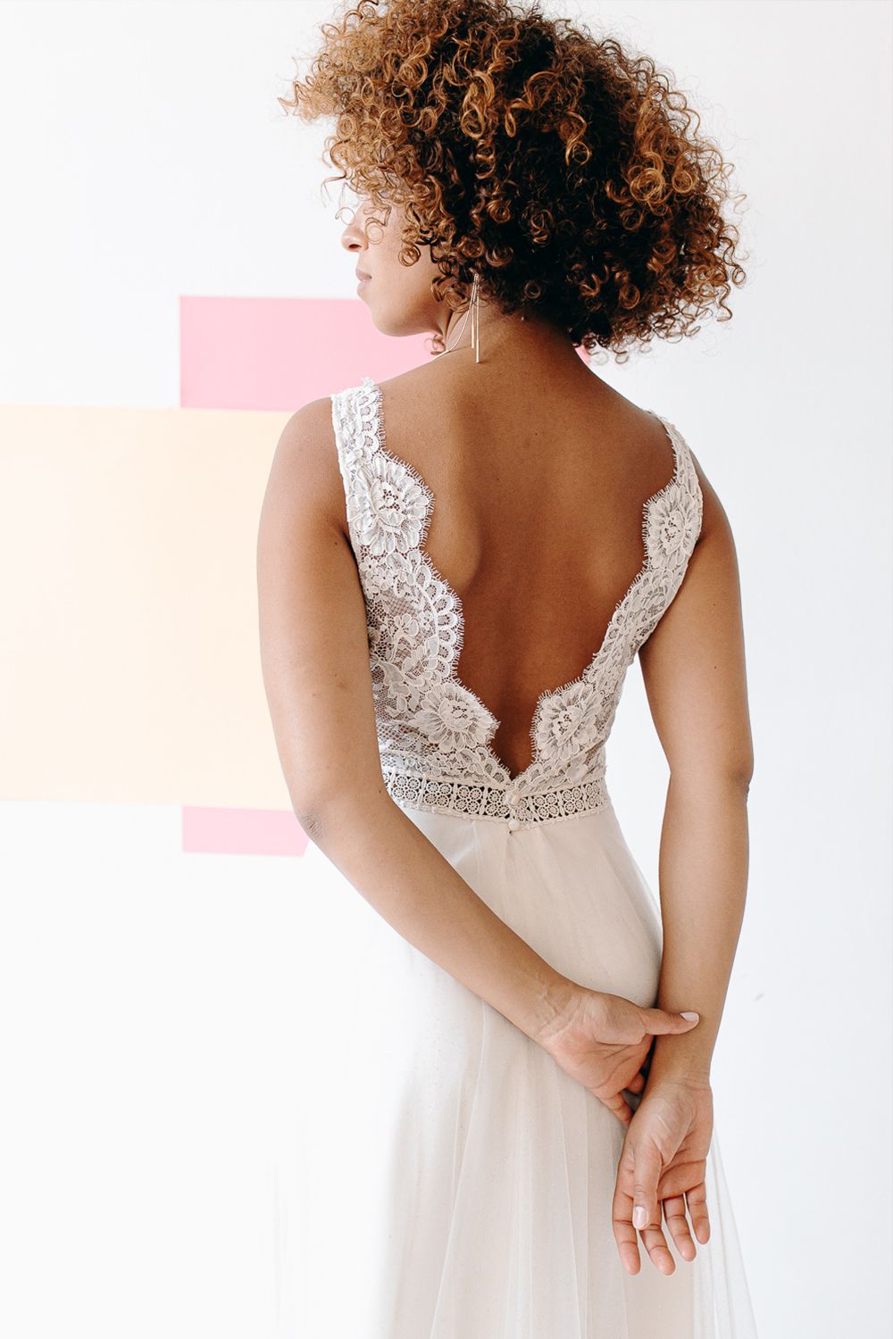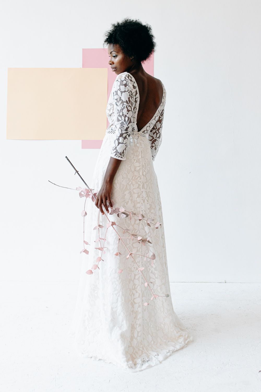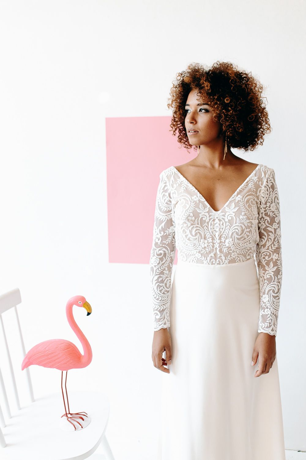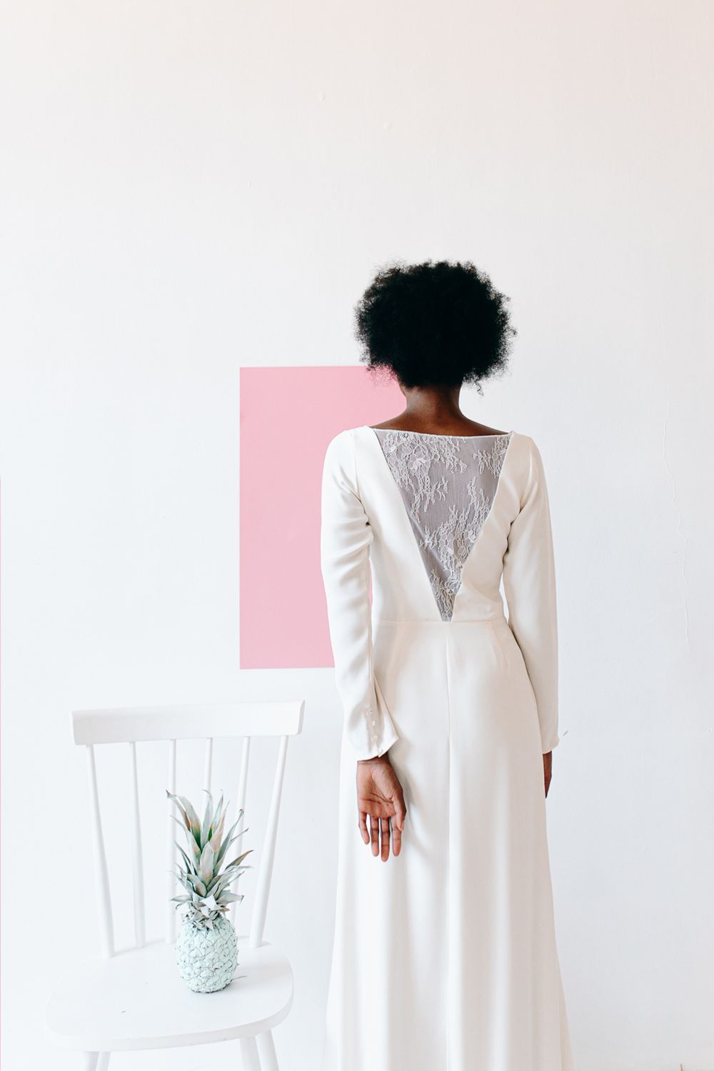 J’ai créé de nouvelles robes de mariée avec de nouvelle matières telles que de la dentelle trois D pour la mariée folk, des tulles brodés pour la romantique, de la guipure pour un air bohème chic et du mikado pour une mariée plus sophistiquée.