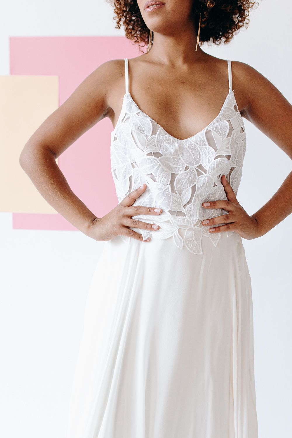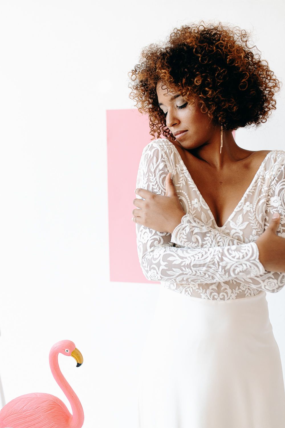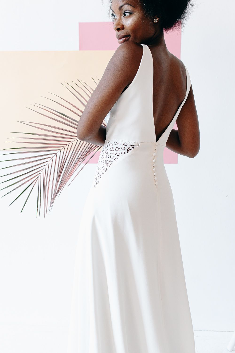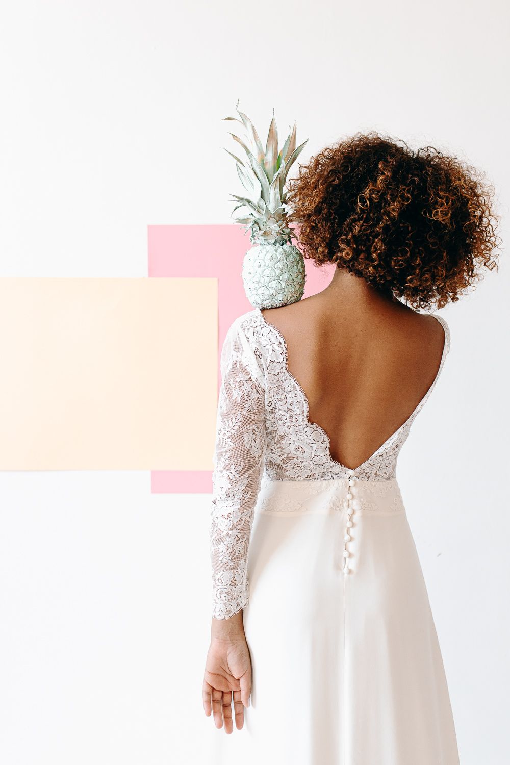 J’ai créé de nouvelles robes de mariée avec de nouvelle matières telles que de la dentelle trois D pour la mariée folk, des tulles brodés pour la romantique, de la guipure pour un air bohème chic et du mikado pour une mariée plus sophistiquée.