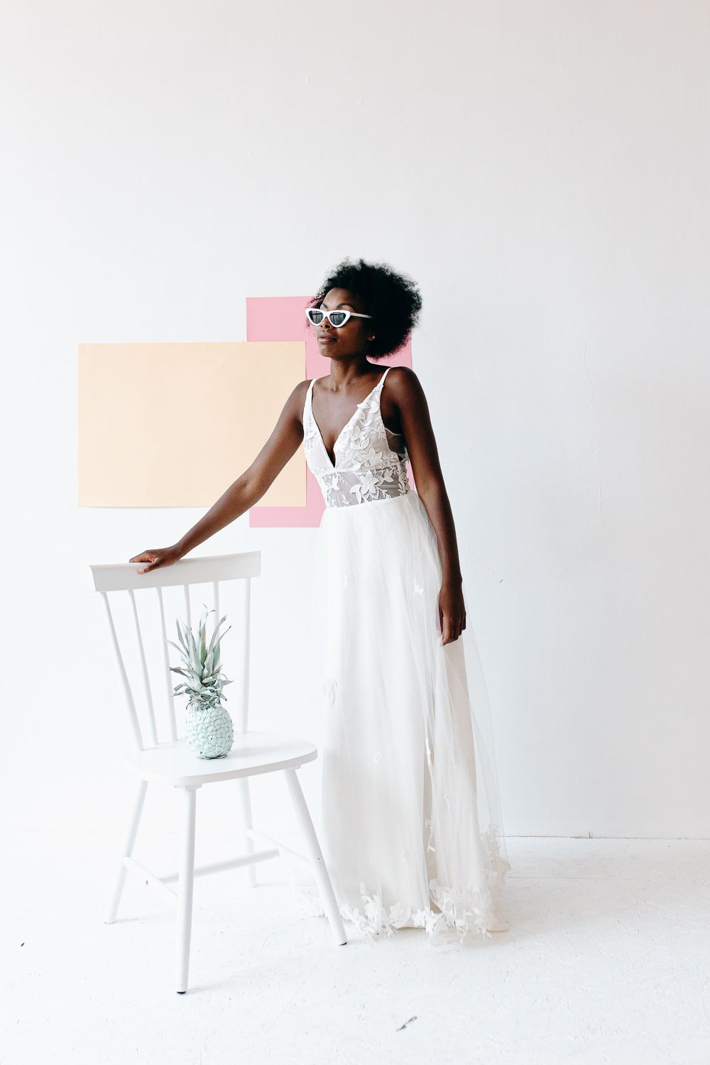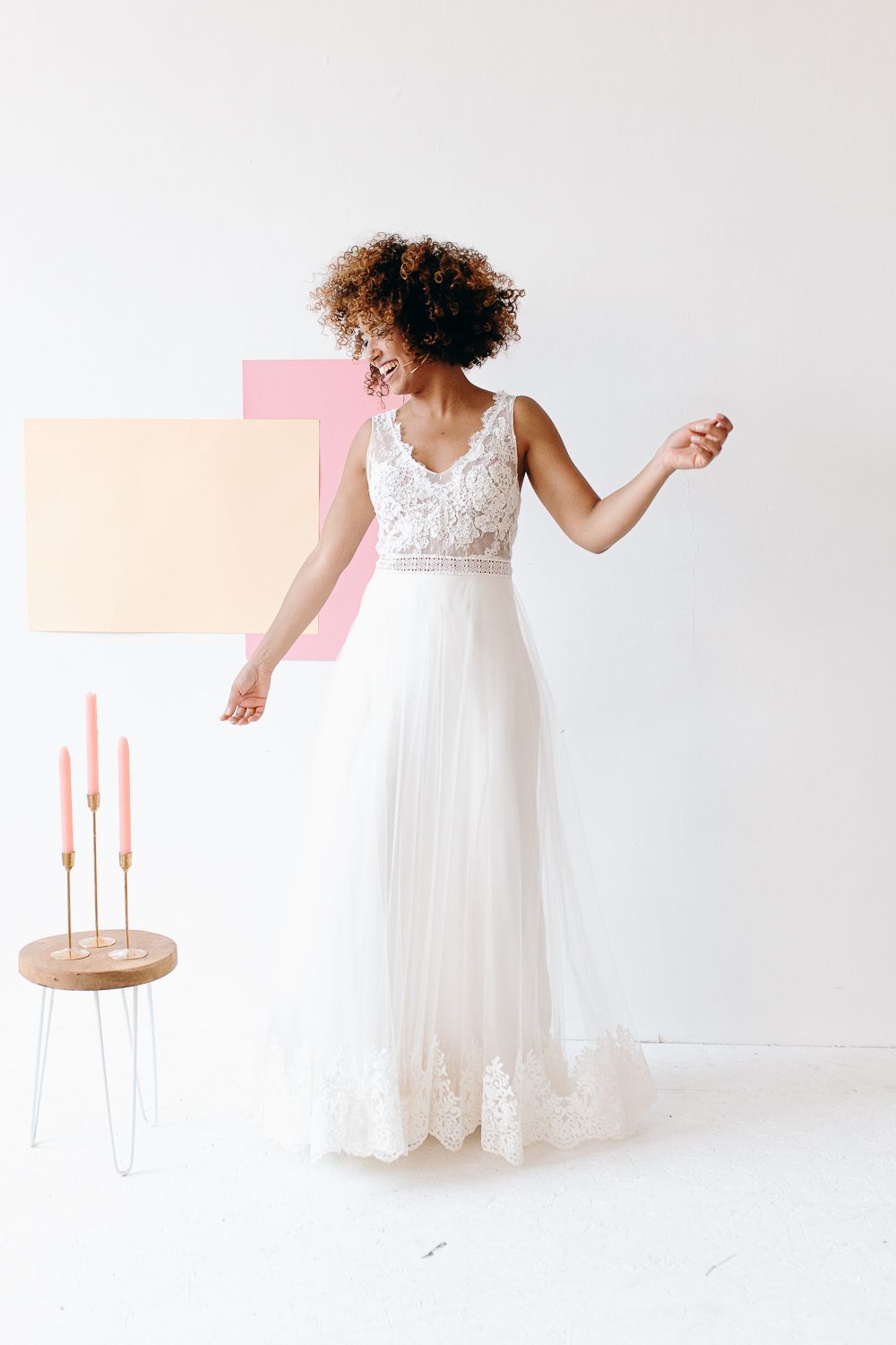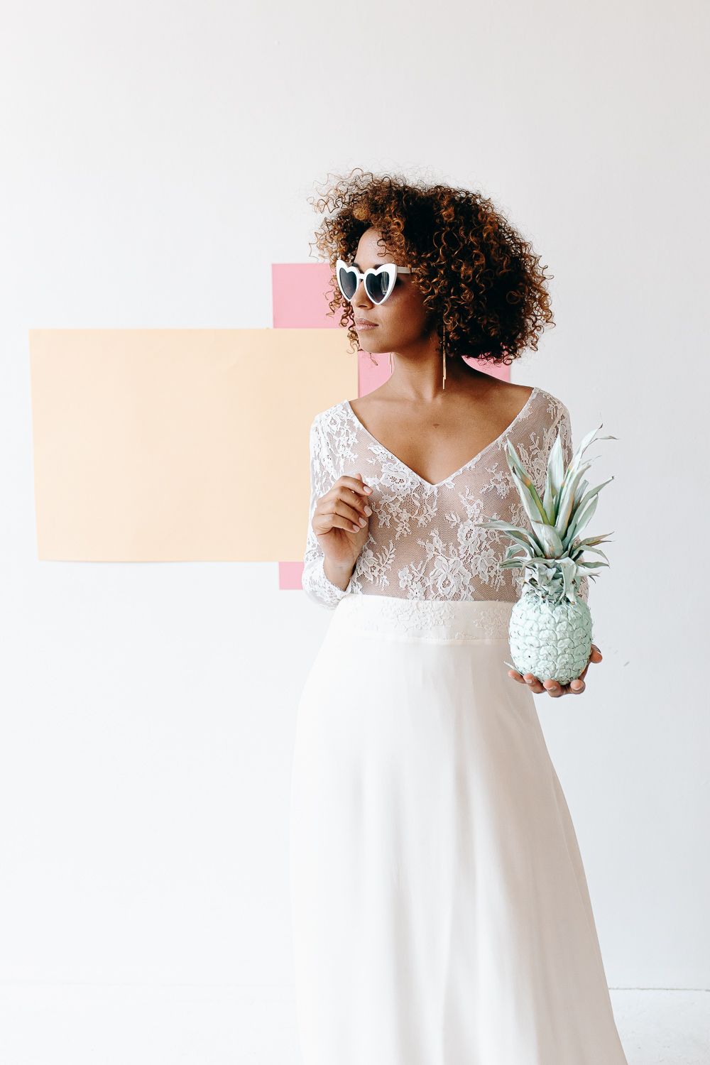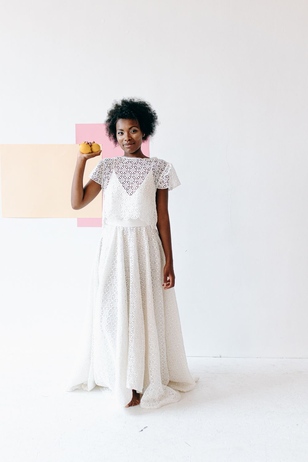 J’ai créé de nouvelles robes de mariée avec de nouvelle matières telles que de la dentelle trois D pour la mariée folk, des tulles brodés pour la romantique, de la guipure pour un air bohème chic et du mikado pour une mariée plus sophistiquée.